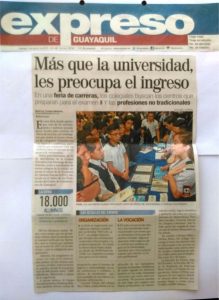 XXII Feria de ORIENTACIÓN VOCACIONAL Y PROFESIONAL “Del Cole… a la U” ECUADOR TV – Guayaquil – Septiembre 2015.