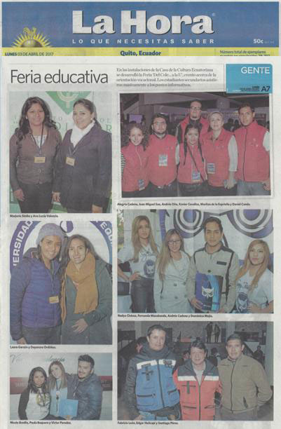 Los días 8, 9 y 10 de Mayo del 2018 se llevó a cabo la Feria de Orientación Vocacional y Profesional «Del Cole…a la U» en su edición 38. Cerca de 17000 estudiantes visitaron la Feria en el Centro de Exposiciones Quito.